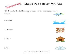 Animals Worksheets for Grade 1 Students | K5 Learning We have created 16 different categories of worksheets for students in grade 1 to practice the needs of animals, the classification of animals by various physical attributes, and the relationship of animals to their habitats. Practice the needs of animals Students practice what animals need to survive in these worksheets. What animals eat worksheets